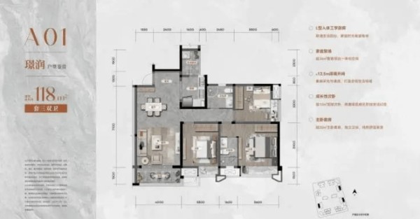 04 主力户型解析 精粹118-169㎡精装湖居华宅,以阔尺横厅、多变空间与双套房设计,满足从品质刚改到多代奢居的全家庭周期需求