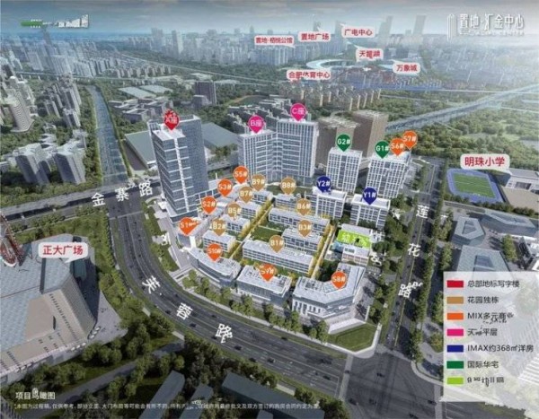 置地汇金商务中心项目于2021年9月开始建设,包括总部商务写字楼和MIX多元商业等多种业态。目前所有楼栋已封顶,景观和公共区域的装修也已经完成。预计在2024年3月交付使用。其中,置地汇金天地是一个由9栋独栋式商业和ABC座商业组成的MIX多元商业项目,采用大面积玻璃立面。商业街包括金融服务、美食、科技创新、休闲娱乐和零售等功能板块,为合肥带来品质消费的全面升级。