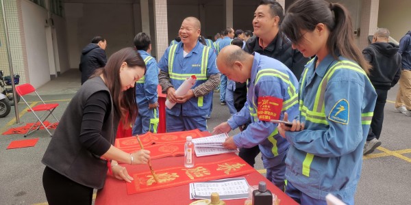 新春将至,暖意先行。2月10日,由番禺区环卫行业工会联合会主办、区工人文化宫承办的“翰墨传情暖环卫,心理护航过新年”主题关爱活动在环卫公司举行,为辛勤的“城市美容师”送上了一份别致的新春祝福。来自全区16个镇街、区城管公司及环卫行业协会的80余名环卫工人代表欢聚一堂,在墨香与暖语中提前感受年味。