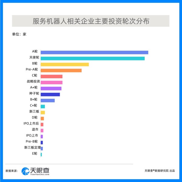 从轮次分布来看,服务机器人融资项目仍以早期项目为主,种子轮、天使轮以及A轮三个轮次的合计占比已超5成。