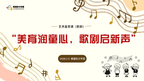 为深耕校外教育美育浸润实践,让高雅艺术真正走进青少年成长历程, 2 月 5 日上午,杨浦区少年宫为合唱团学子量身打造的歌剧艺术鉴赏活动温情启幕。在专业引领与沉浸式体验的双重赋能下,同学们跨越艺术门槛,开启了一场兼具知识性与感染力的舞台艺术探索之旅,让美育之花在心灵深处悄然绽放。