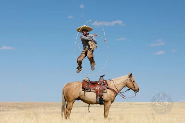Charrería是墨西哥的国技,也是具有重大文化意义的传统,被联合国教科文组织列为人类非物质文化遗产。这项运动包含团队协作完成的各种马术表演。照片中,一位墨西哥查罗骑手正骑在马上,用套索(lazo)演绎其中一项技巧。