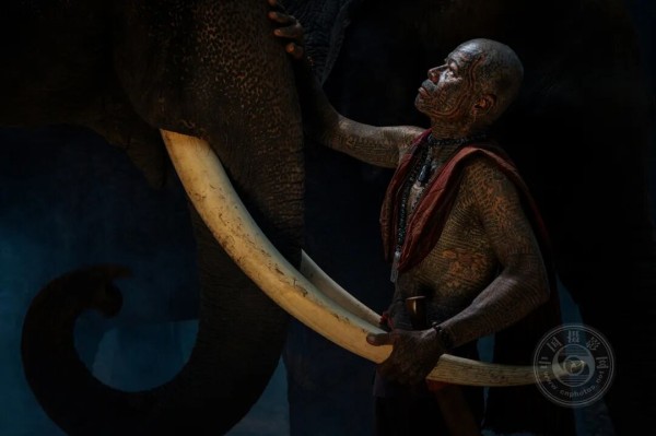 驯象师与他的大象自幼相伴,建立了深厚的羁绊。驯象师在皮肤上刺上了梵文诵经文。当地人相信,当深入森林工作时,这些经文纹身能为佩戴者提供庇护。