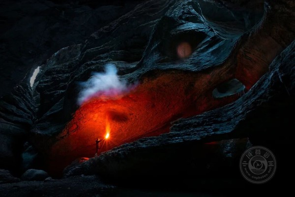 某日,摄影师浏览着心仪的度假胜地照片时,偶然发现了达吉斯坦共和国的地下瀑布。她瞬间从瀑布的形态中辨认出龙的轮廓,此刻只需前往实地,再精心设计光影方案即可。