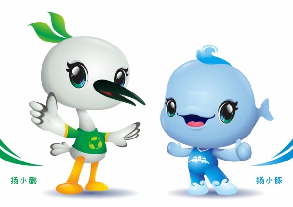 “扬小鹳”“扬小豚”的形象来源于东方白鹳、长江江豚。“扬小鹳”形象可爱、活泼,绿色的服饰和飘逸的羽毛巧妙传递自然和生态的理念,“扬小豚”蓝色的服饰、浪花式的发型,代表扬州水生态环保理念,它们被扬州生态环境部门聘为“生态代言人”。