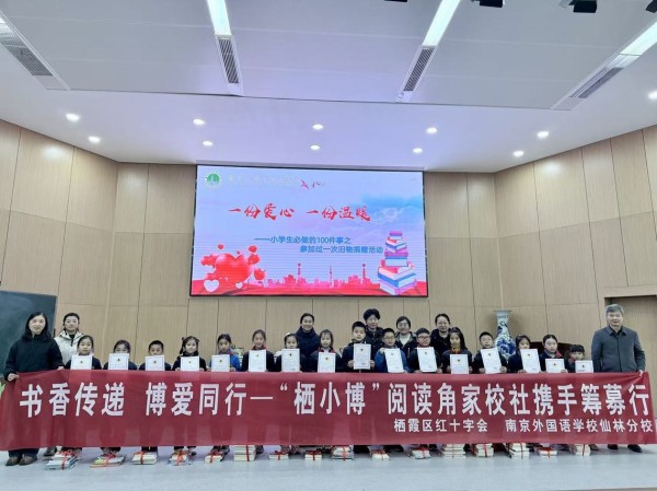 冬日暖情,书香致远。12月30日下午,南京仙林外国语学校小学部二阶内暖意融融,小学部三年级师生联合南京市栖霞区红十字会共同举办的“书香传爱 旧书新生”旧书捐赠仪式在此顺利举行。三年级师生代表与栖霞区红十字会相关负责人齐聚一堂,用满载爱心的书籍,搭建起知识传递的桥梁。