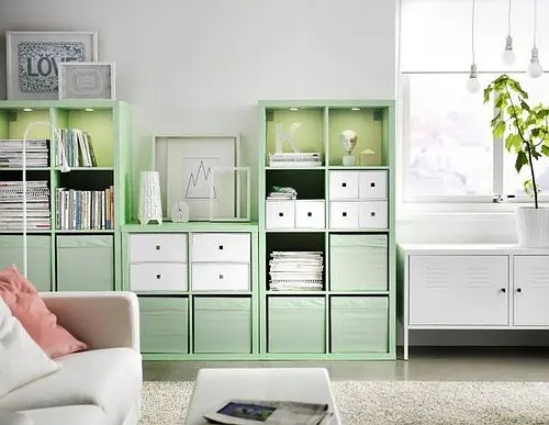 IKEA明星商品KALLAX层架组就是客厅收纳的有力帮手,提供不同尺寸及颜色组合,还能搭配门板及各式储物盒、储物篮,不仅帮你把物品收得好,更能为居家创造独特风格。