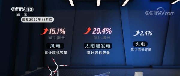 截至去年11月底,全国累计风电和太阳能发电装机容量同比增长15.1%、29.4%,远远高于火电。