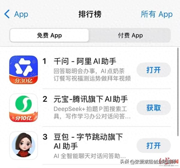AI 之争成了 “外卖大战”,千问靠 “一分钱奶茶” 登顶免费应用榜,专家:窗口期已到