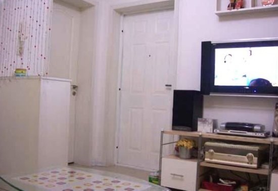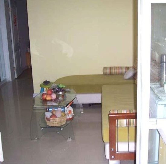 客厅采用的是地砖,看地砖的反光程度就知道地砖比较平。但是,属于防滑的地砖,所以虽然看上去有如镜面,但是别担心会被滑倒。