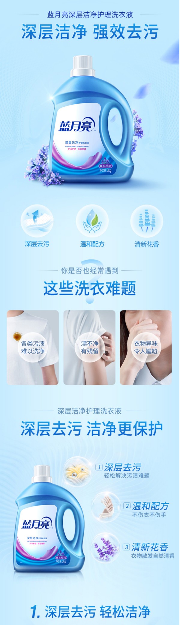 蓝月亮洗衣液除菌去味、深层洁净解决洗衣痛点