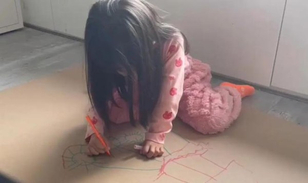 金先生表示,她的女儿今年才4岁半,从3岁就开始画画,他和妻子除了给女儿准备好绘画的工具之外,其他都让女儿自由发挥,并没有特意去教她,就是让她自己乱涂乱画。从女儿学画开始,他们就一直告诉女儿,她是一个画家。