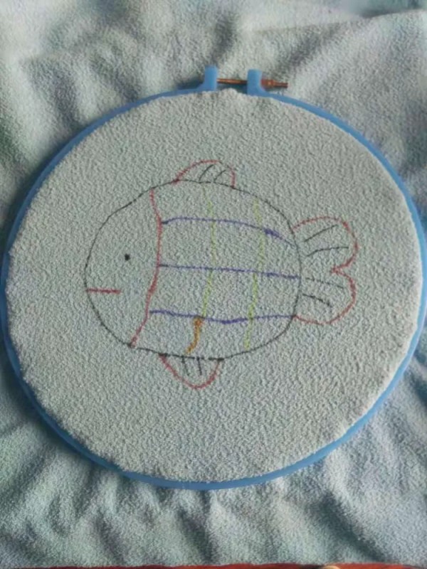 旧毛巾的二次生命,从一幅画开始。我将一条闲置的旧毛巾重新利用,用它作为画布,开始了一段充满创意的手工之旅。这是一幅未完成的手工刺绣图案,鱼的形象已经跃然“布”上,线条清晰,轮廓分明,仿佛在等待着色彩的点缀和生命的注入❤️