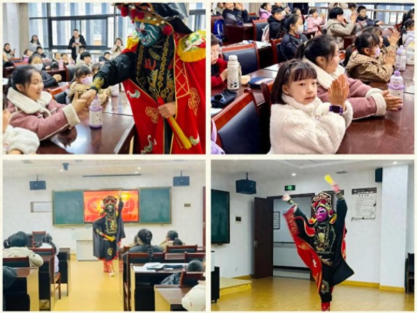 活动现场,来自遂宁市专业川剧团队的演员身着精美戏服,带着川剧脸谱惊艳亮相,手起袖落,一张张色彩斑斓的脸谱瞬间切换,《变脸》绝技引得孩子们阵阵惊呼,掌声与欢呼声此起彼伏,孩子们近距离领略国家级非物质文化遗产的独特魅力,在心中种下了对传统艺术的热爱。