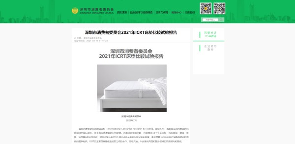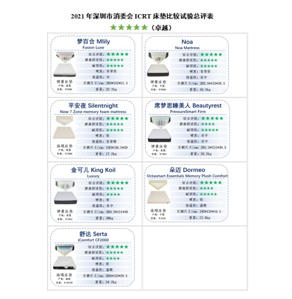 2021年8月12日, 深圳市消费者委员会公布了2021年ICRT床垫比较试验报告,舒达床垫凭借卓越的品牌力、产品质量,综合评级被评为五星级,透气性表现卓越。