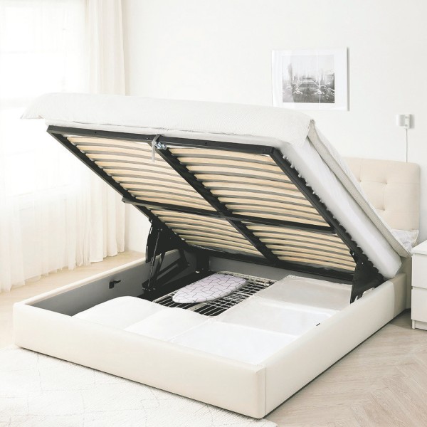 3 高箱气压床(库佳顿) 这款床架四边均有软垫包围,并配有一块软包床头板。每一处细节都体现贴心设计。不仅如此,板条床架下方还提供充裕的储物空间。
