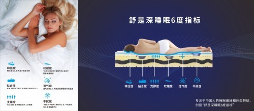 2020年12月,舒是家居公开发布“舒是深睡眠6度指标”,打造深睡眠床垫品质。