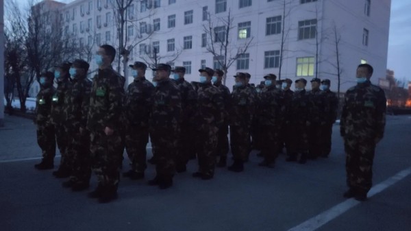 所有文职人员在晨曦中起床集合列队