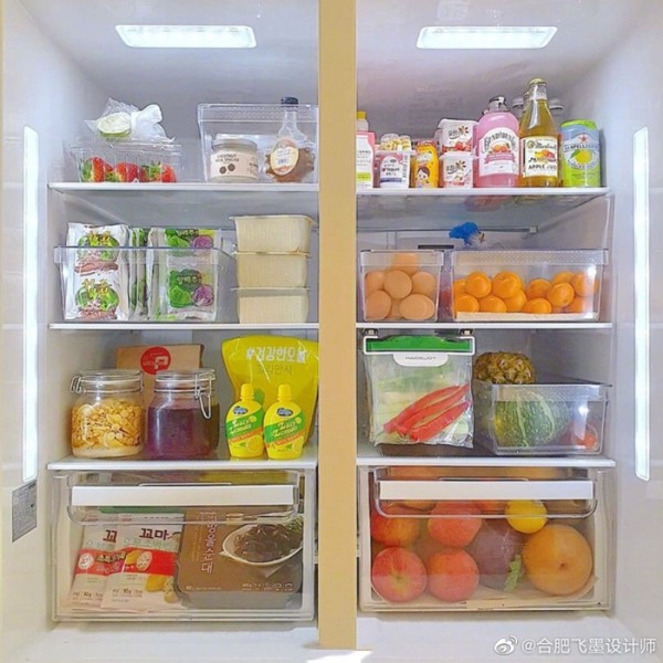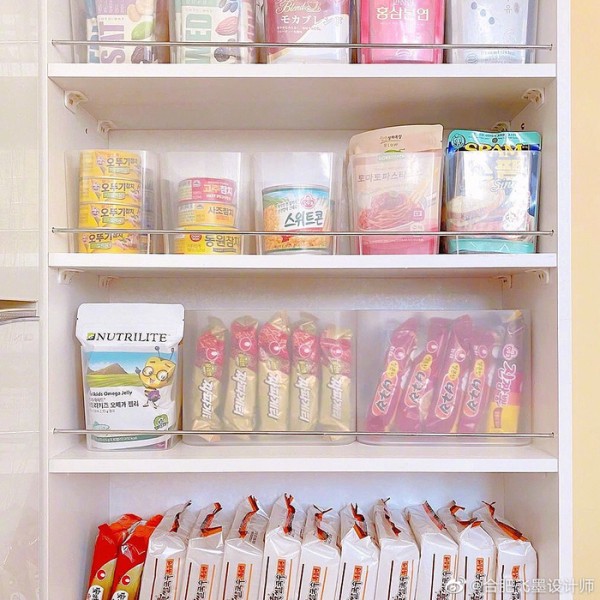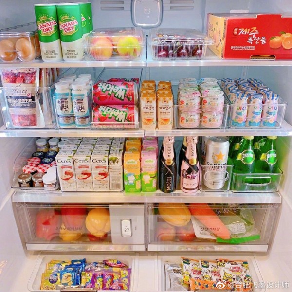 冰箱和零食柜的收纳工具必不可少。推荐开口的和透明的,方便一眼找到自己想要的东西。