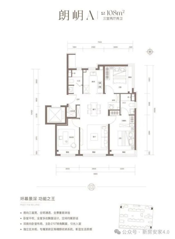 约108平米户型,最大的亮点有三点: