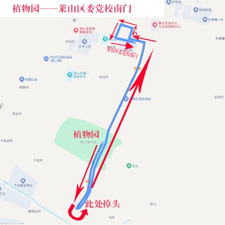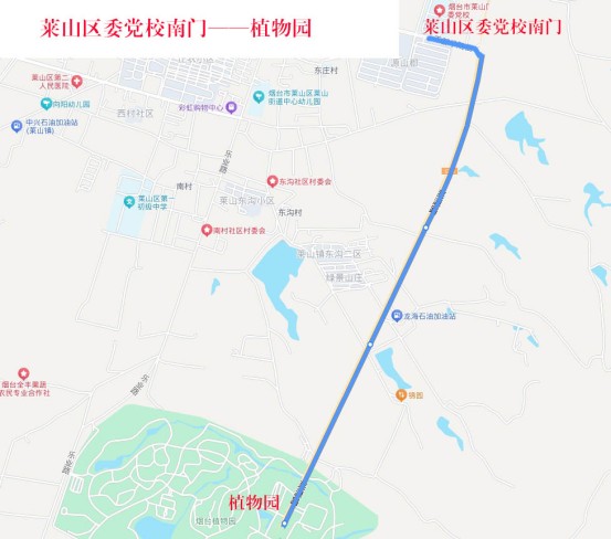 线路走向:由莱山区委党校发车,沿干部学院街、莱源路运行至植物园。
