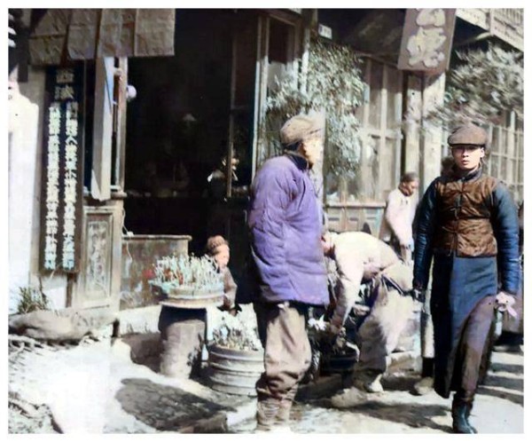 不过,在枯水季节的苏州河上,河道里的水量很少。一条木船搁浅在干涸的河床上,船夫无法行船,只能登岸寻找别的方式谋生。这一幕,展示了上海昔日的困境和艰难生活。 清晨的南京路街景别具一番韵味,街道两旁的高楼大厦令人惊叹。若不是路上早起的挑担小贩,卖菜的场景,几乎让人误以为来到了欧美某个大都市。南京路在那个年代,已经是上海最具代表性的街道之一,见证了这座城市的商业发展和繁荣。