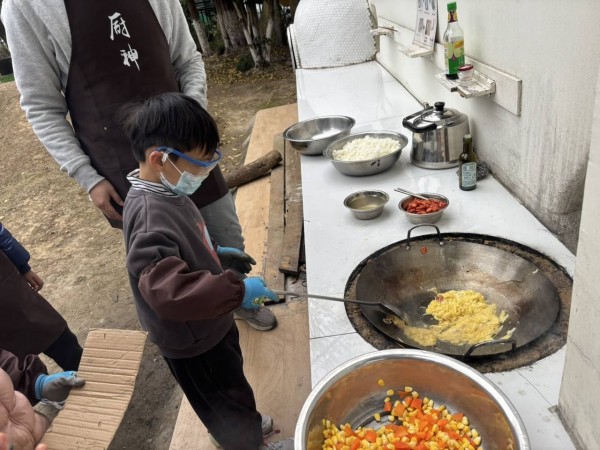 灶台区旁,“小厨师”们分为多个小组,有序开展操作。首先是烧火环节,在老师的指导下,孩子们小心翼翼地将柴火放进灶膛,尝试用火柴点燃。起初,有的孩子因为害怕不敢动手,在同伴的鼓励和老师的帮助下,逐渐克服了胆怯,成功点燃了火苗。看着灶膛里跳动的火焰,孩子们脸上露出了兴奋的笑容。