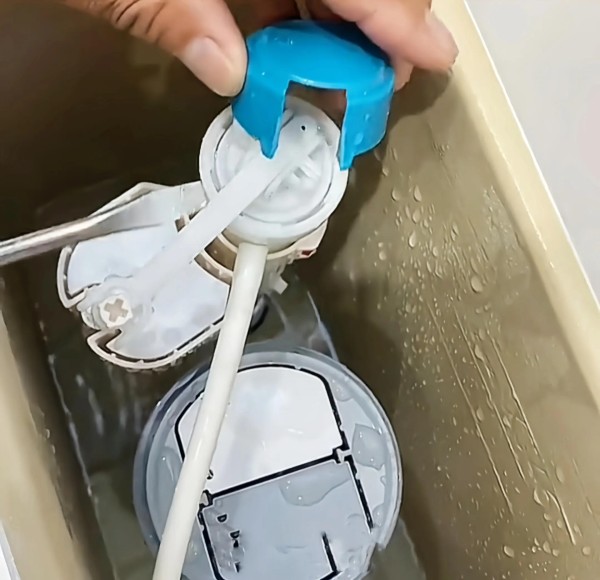 4、马桶水箱上水慢吱吱响或是上水不停,其实就是上水阀的原因。把盖撬开,拿掉销子,取掉浮漂杆,把塑料帽拧下来,一般都是胶皮垫脏了,把胶皮垫取下来冲洗干净,用针给小眼疏通,再原封不动地安装回去就可以了。