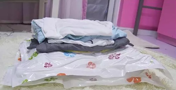 这个适合收纳你暂时穿不到的衣服,不然拿取真的不方便,我一般都都是把我的厚衣服叠好放进去,抽里面的空气,但是不会抽的太严重,确实也能省一些空间。
