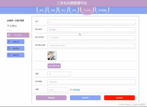个人中心实现用户全部功能