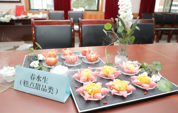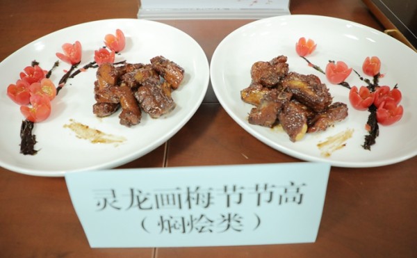 活动现场,每一道参赛菜品都有一个富含美好寓意的名字:双龙戏珠、灵龙画梅节节高、龙腾牛跃、鲤鱼跃龙门、龙飞凤舞、春意盎然、苁蓉翡翠、花开富贵……大赛既强调了健康,又富含创意。在美味中还体现了健康搭配,营养均衡,以及传递了少糖、少盐、少油的健康理念。活动设置了团体奖和单项奖,其中团体奖设一等奖2个、二等奖3个、三等奖5个,单项奖按烹饪方法分设汤品类、焖烩类、炒炸类、蒸品类、卤制烧烤类、凉拌类、糕点甜品类等7个奖项。