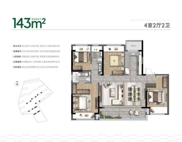 户型鉴赏 建面约105㎡、130㎡、143㎡多种户型,满足不同家庭的改善需求。方正格局,精装交付,为您省去装修烦恼。