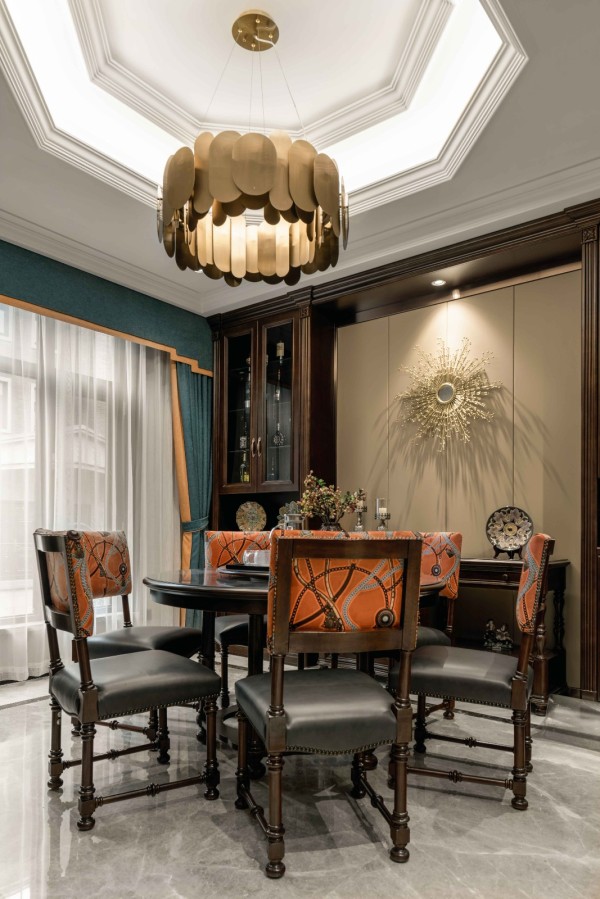饰品,挂画、家具细节与顶面、墙面设计的组合搭配,形成强烈的视觉符号,呈现出一个经典与气度的感官世界。每个元素都蕴藏着卓然的审美品位。具有生活气息的就餐场景更具艺术格调。