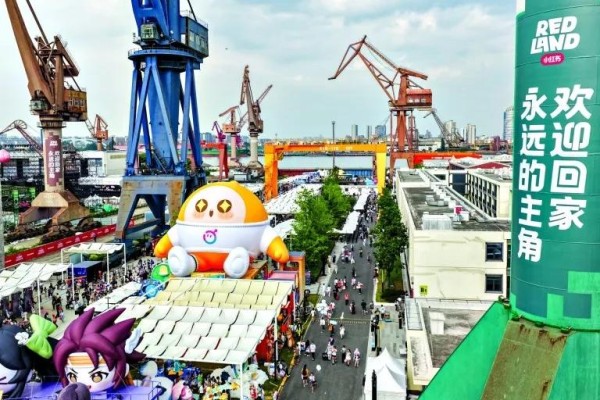 “可玩城市”的叙事赋能,体现为将宏大的城市文脉,转化为可供个体亲身参与的沉浸式体验。在上海复兴岛,小红书“RED LAND”全球首个开放世界冒险岛活动,通过8万平方米实景场地构建“2.5次元开放世界”,把游戏、二次元等元素全面融入复兴岛内的工业遗存,集结宝可梦、原神等50多个国际顶级IP,致力于打造一个可玩、可感、可沉浸的“痛岛”。其两大特点为沉浸式和开放,以“欢迎回家,永远的主角”为主题,将线上游戏的世界观和用户体验搬到线下,岛上的船台、共青路仓库、复兴岛公园分别被塑造成“翻身时空港”“重生试炼场”“发呆小森林”三大沉浸式体验区,适配不同IP展位,同时引入五大角色系统,登岛玩家可扮演1个角色身份,领取装备包推进“专属剧情线”,在线下成为线上世界观中的“主角”,使二次元作为新兴的社交方式,通过线下活动,将本存在于网络圈层的关系延伸到现实生活,成为人与人之间真实的联结。RED LAND通过为上海年轻人的兴趣集结提供新场域,构建起沟通二次元和三次元生活的沉浸式体验。