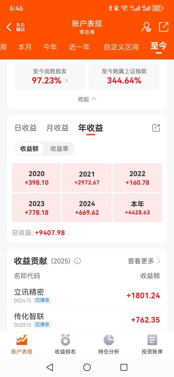 盈利几百的原因很简单,我仓位9成在中信证券账户上,盈利几千说明我资金量开始转移到东方财富。