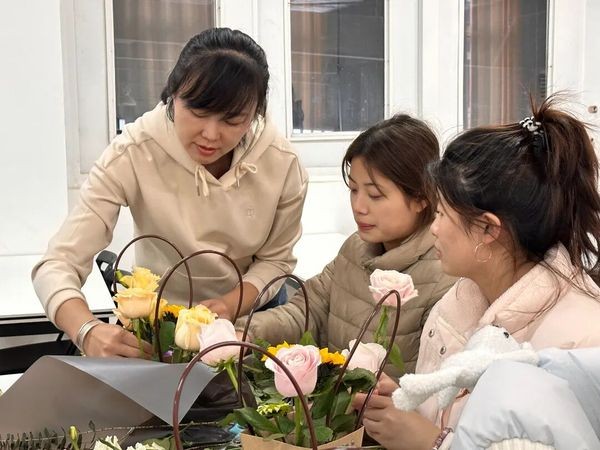 活动现场,每份花束摆放得整整齐齐,空气中弥漫着淡淡的花香,伴随着美妙的音乐,在花艺师的指导下,师生们用心挑选每一支花朵、每一根枝条,将它们巧妙地组合在一起,创作出一个个独具匠心的插花作品。在插花的过程中,大家不仅享受到了创作的乐趣,还通过相互交流和分享,增进了友谊。不少同学表示,这次活动让他们感受到了美学的魅力,也激发了他们对美学艺术的热爱和追求。