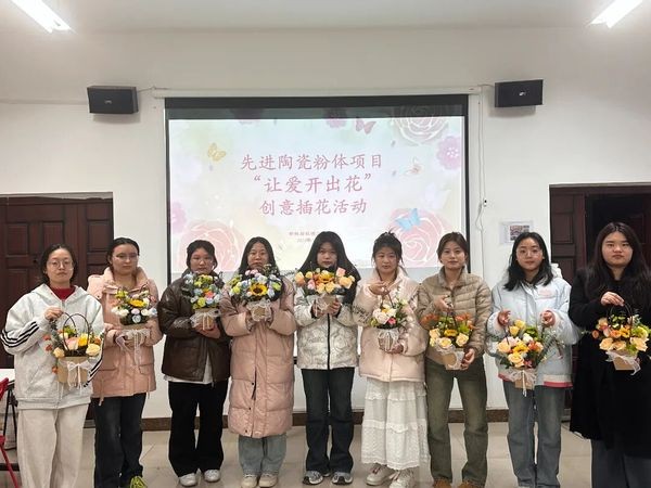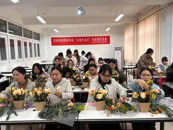 2024年12月2日,材料与环境工程学院、合作企业导师和先进陶瓷粉体项目组的女同学们共同参与了“让爱开出花”创意插花活动。此次活动巧妙融合了美学艺术与动手实践能力,为师生们带来了一场视觉与心灵的双重盛宴。