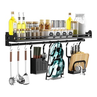 不锈钢黑色壁挂式料架锅盖碗碟收纳挂件挂架套餐厨房置物架