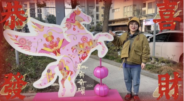 今年是马年,路边可以看到以“马”为主题的新春装饰,以及写着“心有奇骥”的祝福语。孙哈娜一边念着“马上成功”“马上赚钱”的祝福,一边和路人互道“新年快乐”“恭喜发财”。