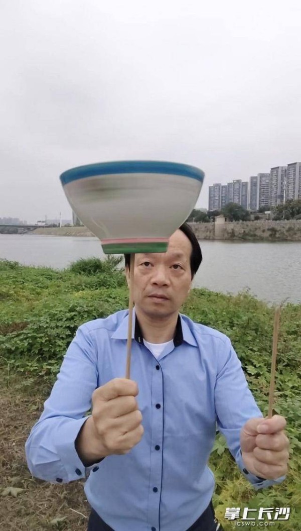 在开福区恒大雅苑的草坪上,一只重达1公斤的瓷碗在筷子顶端高速旋转。碗身旋转如飞,仿佛一只白色的蝴蝶在春风中翩翩起舞。这不是杂技团的舞台,而是一个普通人的日常练习场。这个转碗的人叫李伟,今年53岁,是来自邵阳的“新长沙人”。