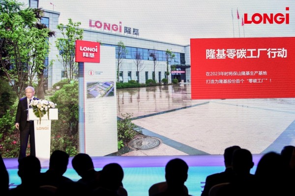 隆基还在产品制造层面延续绿色可持续发展理念,2021年,隆基通过了工信部绿色制造体系认定,成为同时荣获国家级“绿色工厂”“绿色设计产品”和“绿色供应链管理企业”三项荣誉的光伏企业。保山隆基生产基地也将在2023年成为隆基首个“零碳工厂”。