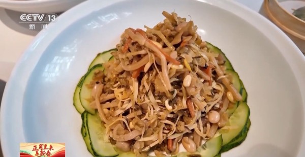 总台央视记者 赵雨彤:冬笋的脆嫩加上乳黄瓜的鲜香,真的是越嚼越香。过年的时候来这么一口,香留唇口味入心。