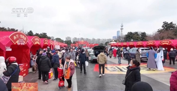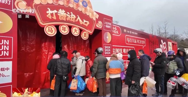 总台央视记者 赵雨彤:镇江有句老话,不打酱油不过年。我就在镇江打酱油年俗大集的现场。虽然昨晚下了雪,但大家的热情依然不减,早早地就来排队了。