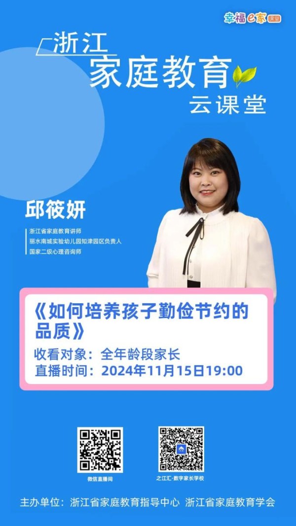 原标题:《如何培养孩子勤俭节约的品质 | “浙江家庭教育云课堂”直播课》