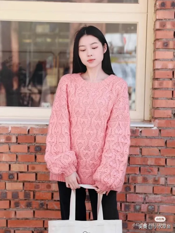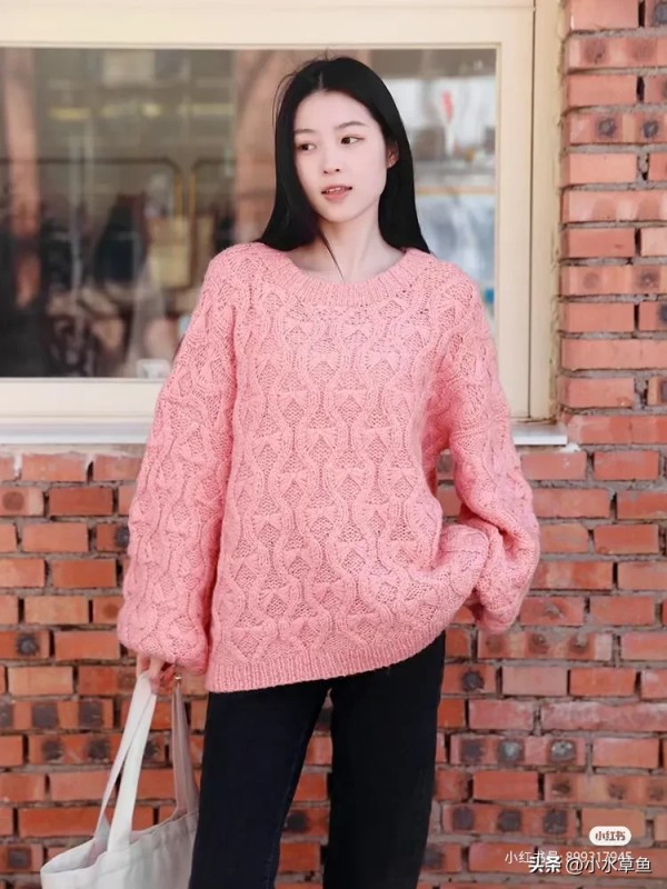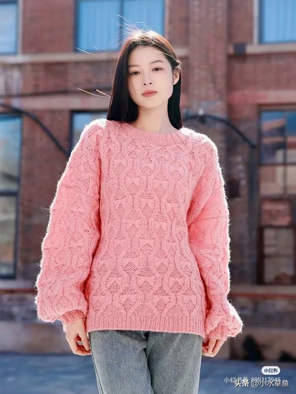 使用羊驼羊毛混纺线进行编织,蓬松的线材上身轻柔舒适,全身花样的设计精巧美丽,编织起来更有趣,松弛廓形包裹身体,营造人在衣中晃的视觉效果