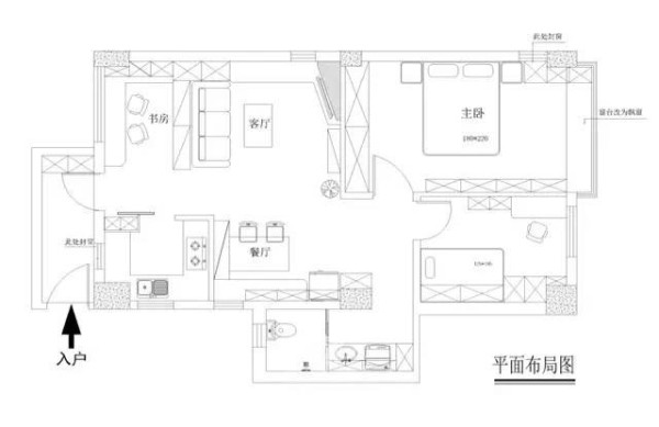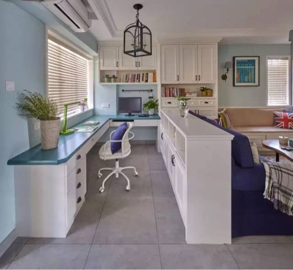公共空间辟出的一块工作台,让生活与工作分离,把纷扰与安静隔离。超大的工作台也可以同时供一家三口使用主卧