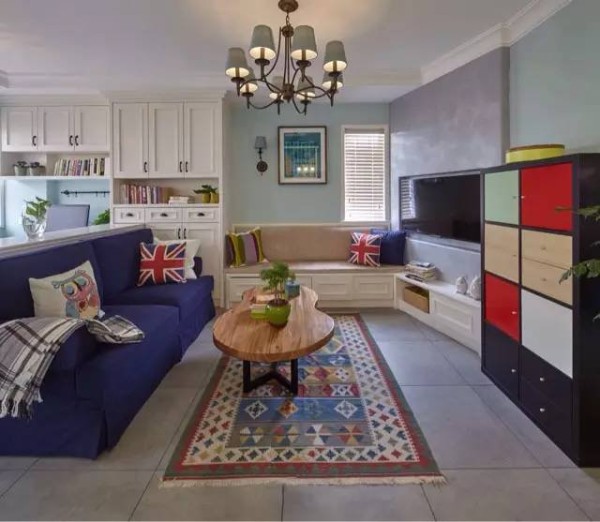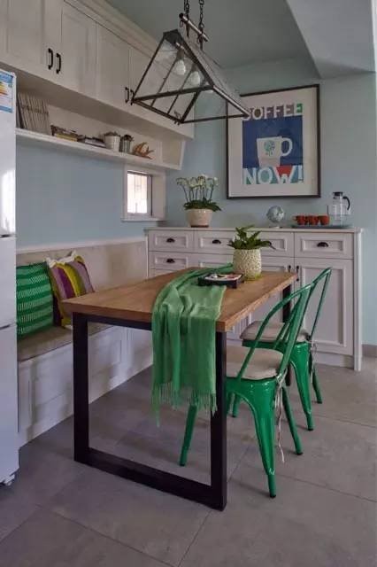 客厅与餐厅作为家庭温馨时刻,好友来访欢聚的主要场所,采用了开敞式空间布局,带来舒适透气感。丰富的色彩为营造愉悦的氛围加分。同样作为家庭使用,收纳储物功能是必不可少,有效利用墙面设计大量壁柜,将生活的琐碎统统包容起来,形成一种秩序美感。工作间