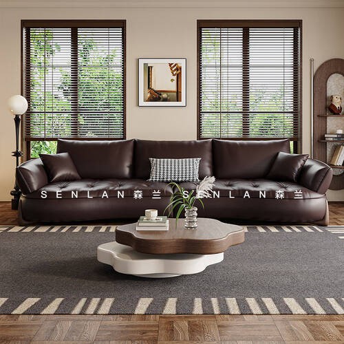 森兰极简真皮沙发,打造你理想的复古客厅生活!
