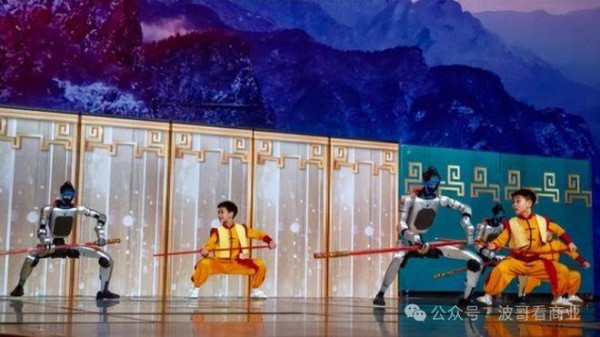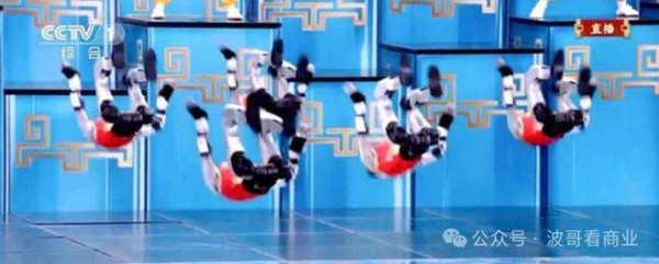 今年除夕,国人见证了一场震撼人心的盛大演出:数十个钢铁机器人在舞台上整齐列阵,表演着惊艳的武术、攀墙后空翻、舞剑,还有巧妙的手指盘核桃等高难度动作。那一刻,仿佛这些机器人的灵性能穿透屏幕,跃然而出,令观众大为震撼。复杂的武术动作,曾经只有人类才能完美呈现;而如今,由电机、数据线和钢铁构成的机器人,竟能接近完美地复刻这些动作,而且它们在落地的瞬间,能通过微小的步伐调整姿势,站稳身体。这个细节,让人不禁联想到体操运动员如何用碎步来消除惯性,最终稳定自己的身体和脚步——这是人类在协调和惯性控制上的一项技术,而现在,机器人似乎也能做到这一点。 在除夕夜,波哥看商业(ID:bogeksy)注意到,如果你仔细观察电视画面中的一幕,便会看到另一个令人惊讶的细节:在小演员和机器人持棍对打的场景中,一位小运动员因为弯腰的角度稍有偏差,机器人的手臂迅速调整,压低了棍棒的高度,帮助小演员顺利越过。这种灵巧的反应,简直令人叹为观止。与机器人精准的动作校准类似于空翻后的微步调整逻辑,它们在舞台上展现的灵性,仿佛已经超越了程序的限制,拥有了自己的大脑和神经。机器人不再仅仅是按程序执行任务的傀儡,而是在自我感知、快速调整的过程中展现出了类人的智慧。