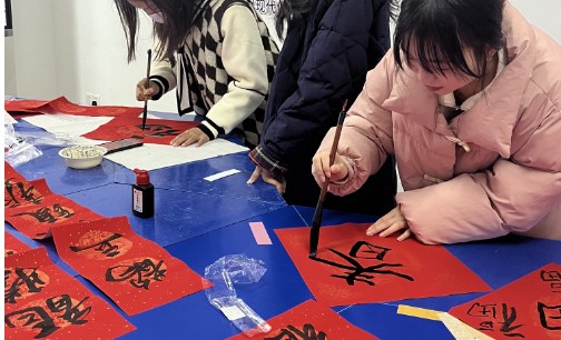 活动伊始,生活实践部为同学们准备了春联、书签和香包等材料,同学们跃跃欲试。活动进行的过程中,有的同学擅长书法,书写了一幅幅颇具中国风韵的春联;有的同学擅长手工,缝制了一个个古色古香的配饰荷包;有的同学把对未来的期许和希望,写入了一枚枚书签上……整个过程充满了欢声笑语,大家都沉浸在手工制作的喜悦中。
